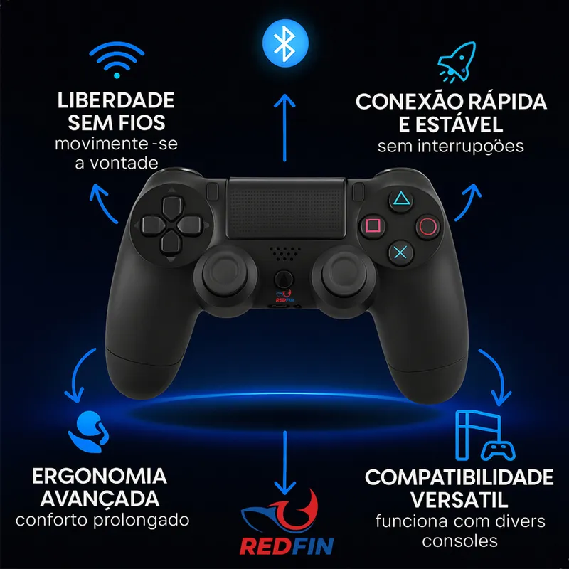 Controle sem fio com tecnologia Bluetooth, compatível com PS4, PC, Smart TVs (como Samsung) e outros dispositivos Bluetooth. Ideal para jogos em diferentes plataformas com conforto e liberdade de movimentos.