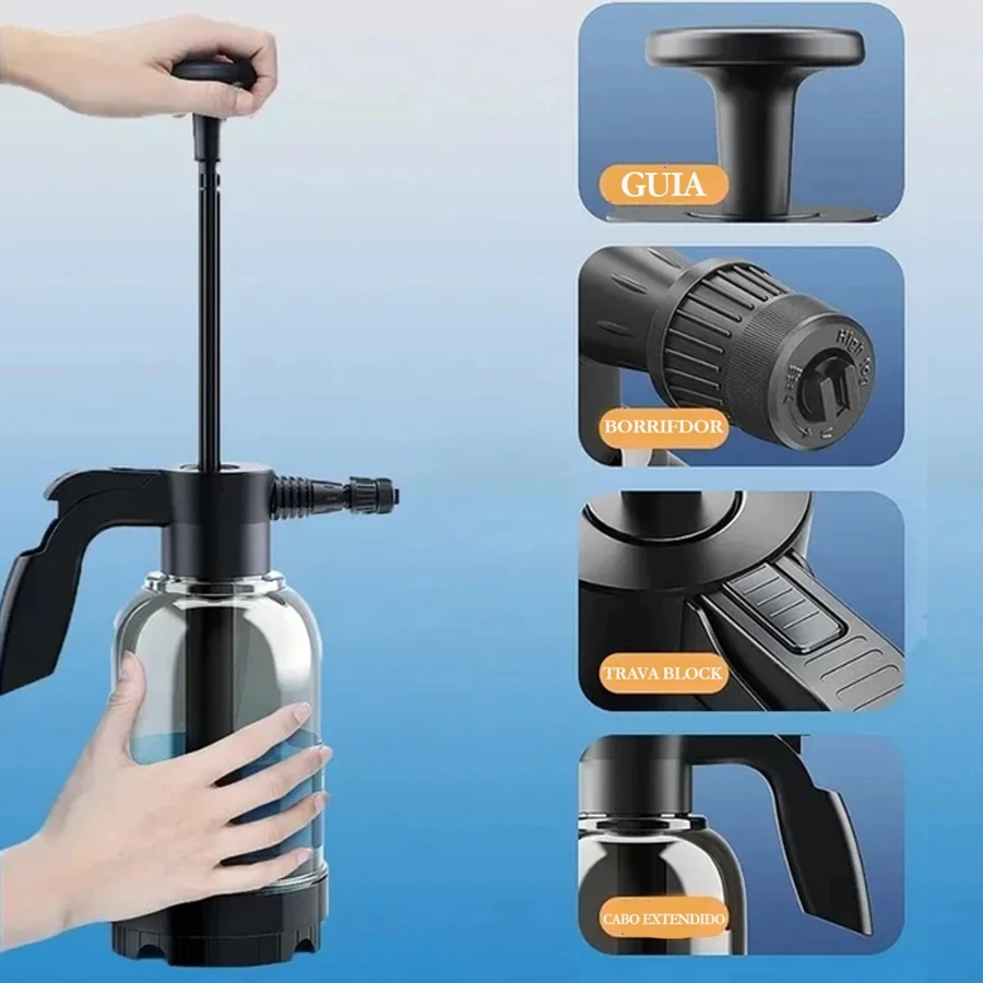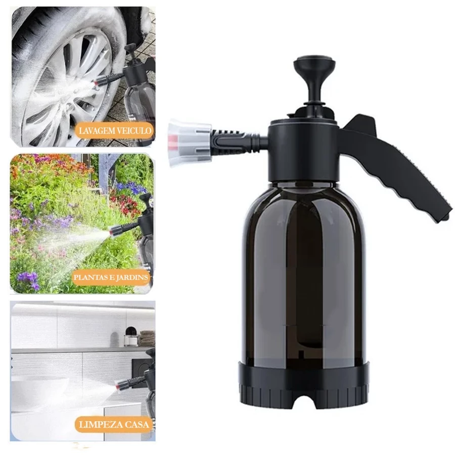 ulverizador manual Snow Foam 2 litros com dois bicos intercambiáveis, ideal para aplicação de espumas, detergentes e produtos de limpeza em carros, motos, fachadas ou superfícies variadas. Prático e eficiente, é indicado tanto para uso profissional quanto doméstico.